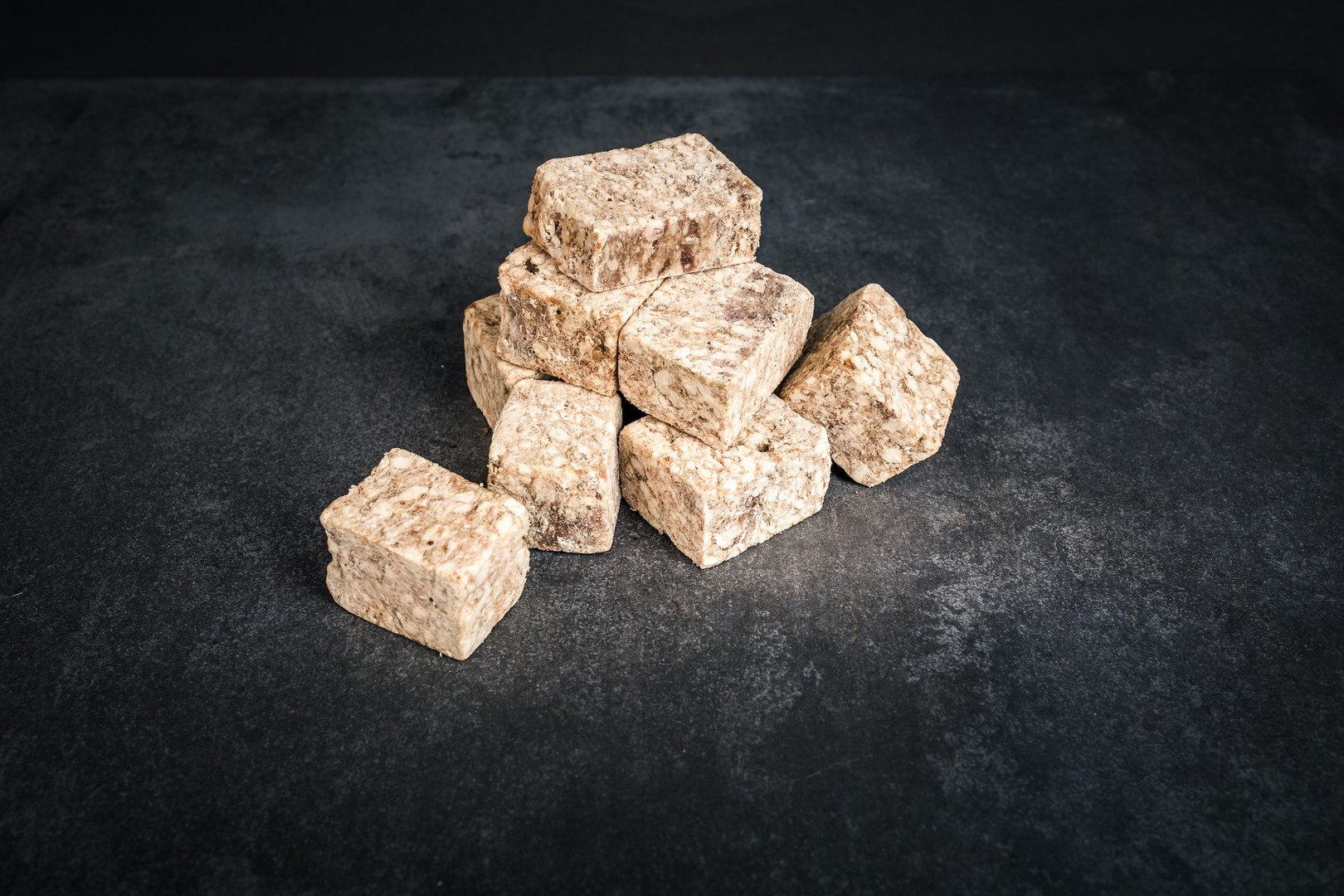 Pred uporabo popolnoma odtajajte. Ko je hrana odtajana, jo lahko v hladilniku hranite do 24 ur. Vedno zagotovite svežo pitno vodo. Nikoli ne zamenjajte hrane naenkrat, ampak postopoma povečujte količino nove hrane. Sveže zamrznjena hrana je naraven in organski izdelek. Zato morate z našo hrano ravnati kot s surovim mesom. Upoštevajte vse potrebne previdnostne ukrepe. Uporabljajte le kot hrano za domače živali. Hranite ločeno od hrane za ljudi. Po ravnanju s tem izdelkom vedno umijte roke in očistite vse pripomočke ter površine.