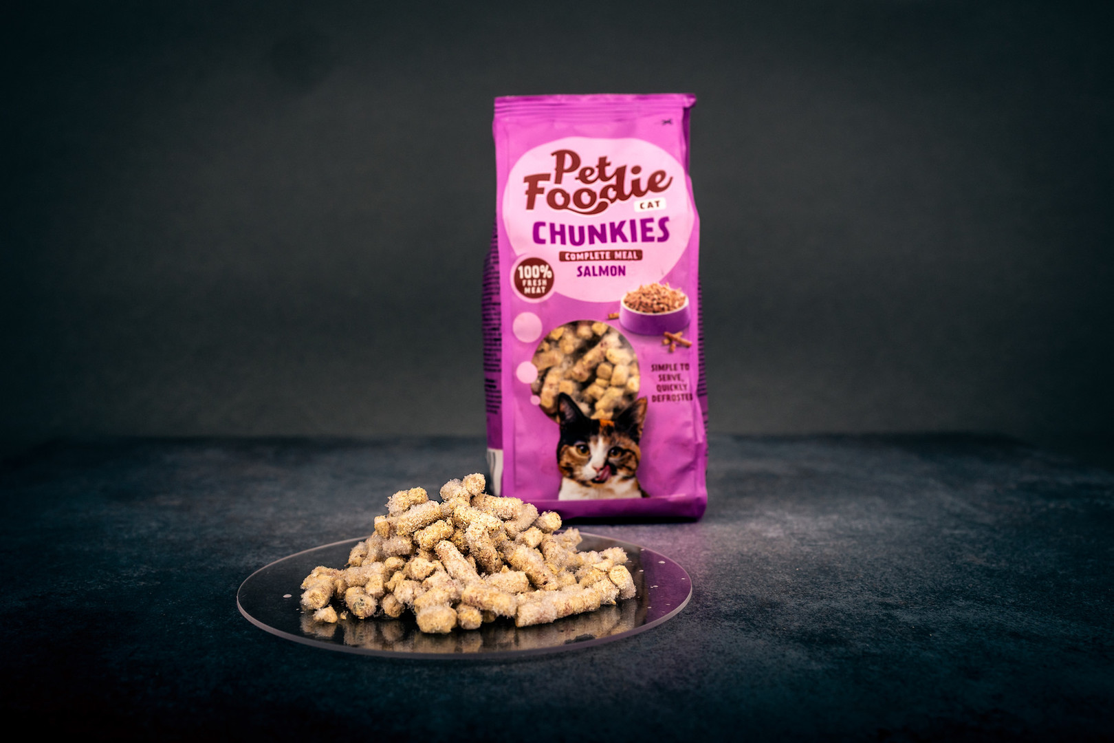 Iz posodice vzemite želeno količino Chunkies Salmon in jo pustite, da se odtali v hladilniku. Ponudite pri sobni temperaturi. Preostanek shranite v zaprti vrečki v zamrzovalniku.❗